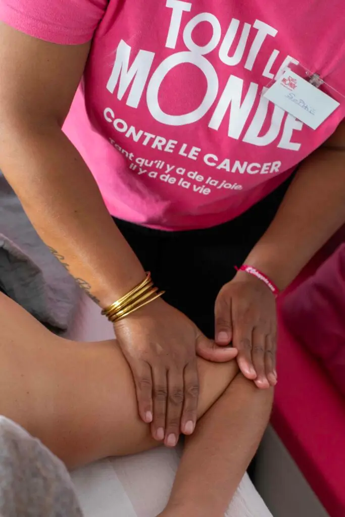 Pour le personnel soignant, l’échappée rose s’invite dans les services ! Notre équipe aménage et décore une salle où l’une de nos socio-esthéticienne les attend pour leur offrir une séance de réflexologie de 15 minutes. Une petite pause de détente qui n’impacte pas l’organisation de leurs journées chargées.