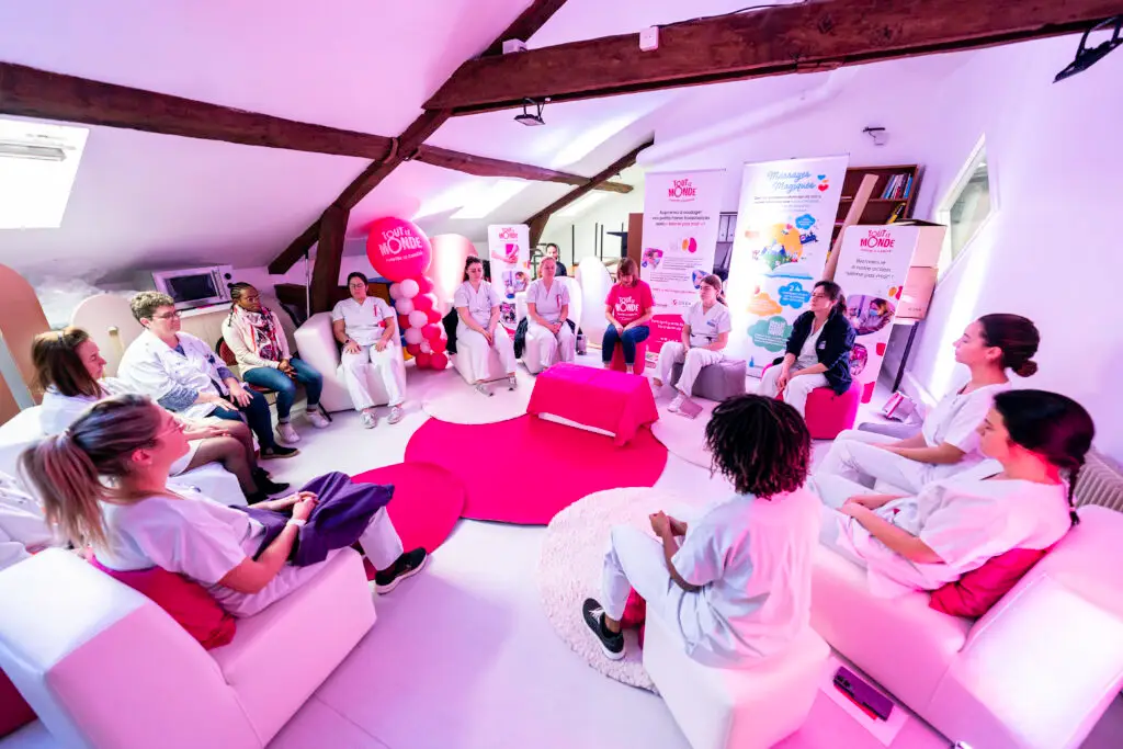 Même pas mal, ce sont des sessions de formation à la gestion de la douleur, destinées aux soignants et aux parents d’enfants atteints de cancer. Organisées dans 15 hôpitaux à travers la France, ces formations enseignent des gestes simples pour apaiser et distraire les enfants pendant les soins et ainsi les soulager. Elles ont aussi vocation à renforcer les liens au sein du collectif patient-aidant-soignant qui joue un rôle essentiel face à la maladie. L’année dernière, 300 personnes avaient bénéficié du dispositif, cette année nous espérons en toucher le double !